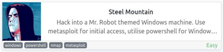 Steel Mountain maquina catalogada de dificultad “Easy” basada en la escalacion de privilegios en sistemas windows, en esta ocasión nos aprovecharemos de la vulnerabilidad Unquoted Service Path en español conocida como espacios en las rutas, a continuación veremos de que trata!